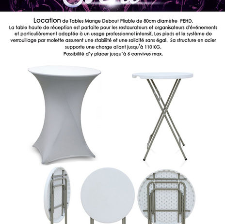 - Manges debout + housses blanches ou noires - Tabourets hauts - Housses de chaises en lycra blanc & Noeud de couleur